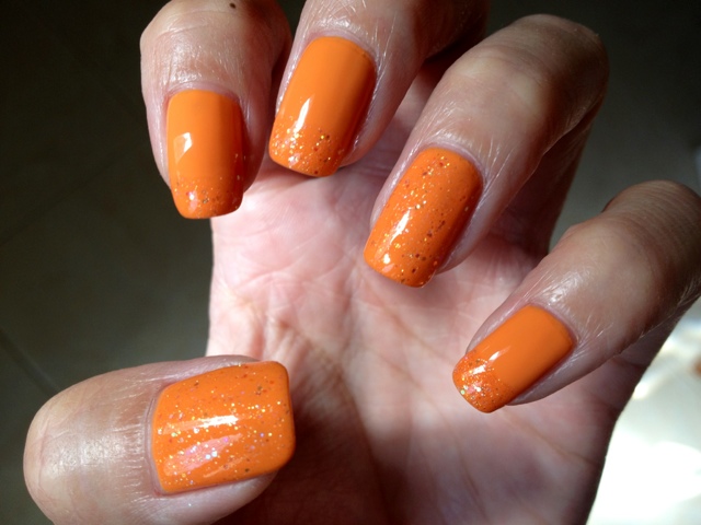 So here is my "Day 2" nail look. I am not very fond of orange on my nails, but this one actually isn't too bad. This is Zoya Arizona with Sinful Colors UFO glitter polish. I still will probably take this off tonight so stay tuned for Day 3! :)
